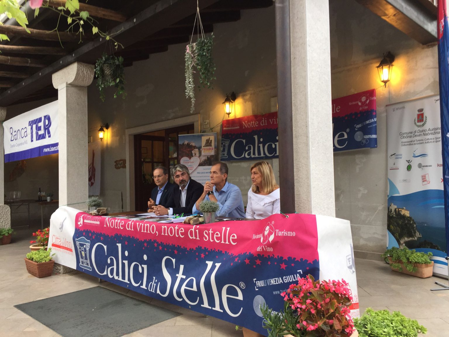 Nelle conclusioni Floriano Zambon presidente nazionale delle Città del Vino, ha dichiarato come la proposta di Calici di Stelle del Friuli Venezia Giulia s’inserisca ottimamente in quella nazionale che muove oltre 15 milioni di wine lover. Per Zambon consegna da parte del sindaco Pallotta e dell’assessore al turismo Massimo Romita di 1 kg artistico della famosa Pietra di Aurisina delle cave locali regalata dall’azienda Pizzul insieme all’eccellenza della viticoltura locale, la Vitovska Kamen di Zidarich. Venturini ha donato agli intervenuti copia del citato Osservatorio sul Turismo del Vino. Brindisi finale anche grazie alla collaborazione della Pro Loco Mitreo di Duino Aurisina, alla presenza tra gli altri del Ducato dei Vini del Friuli Venezia Giulia con Fabiana Romanutti.