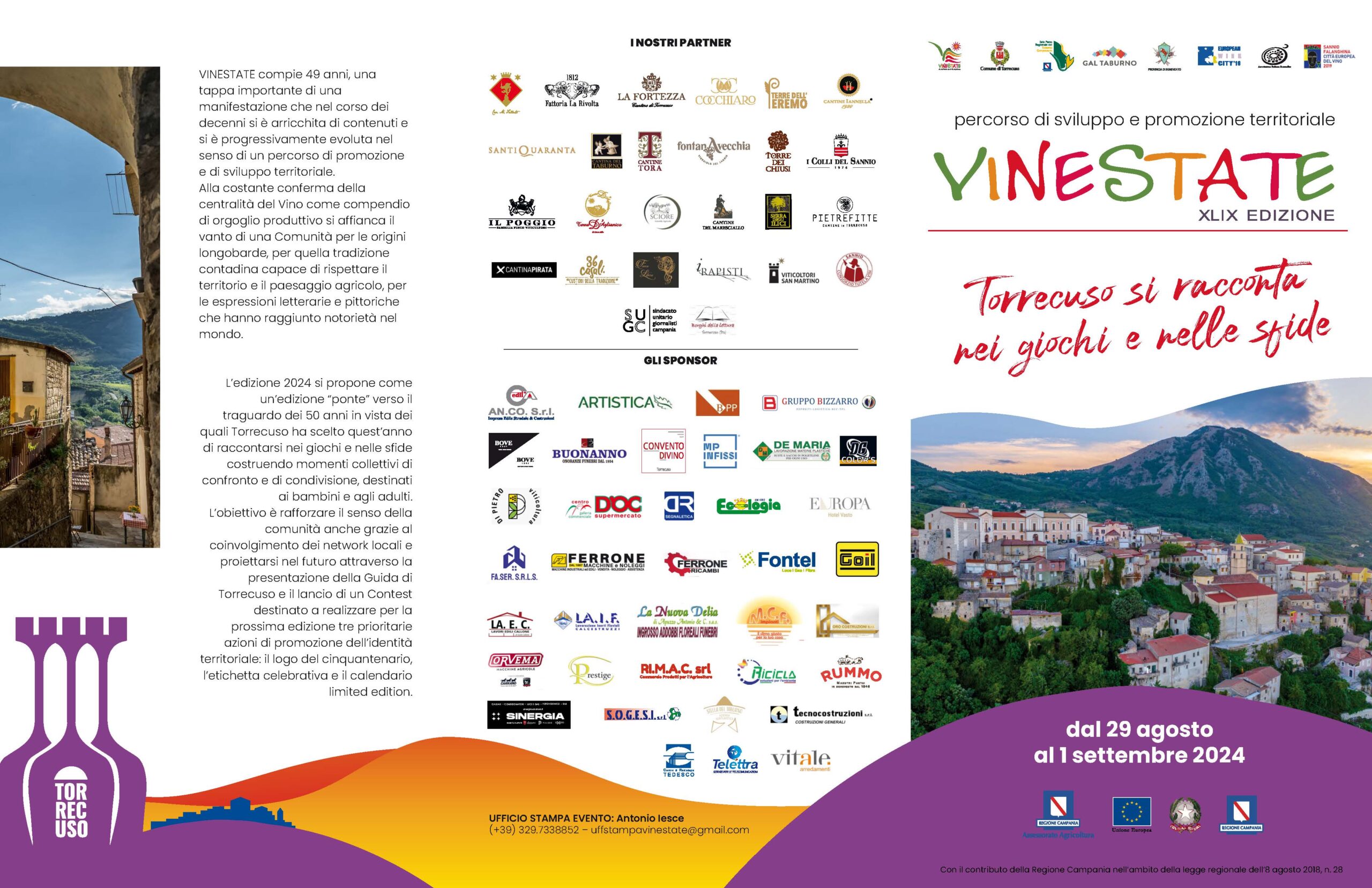 C’è attesa a Torrecuso, grazioso Borgo in provincia di Benevento ai piedi del Taburno, per la 49esima edizione di “Vinestate” la rassegna dedicata ai vini del Taburno in programma da giovedì 29 agosto a domenica 1 settembre.
